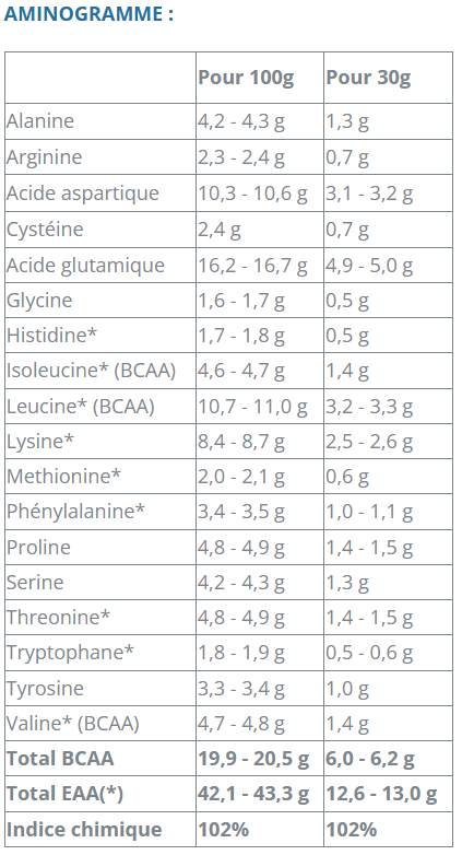 Pour 1 shaker : + 80% de protéines, 6,0 g de BCAA